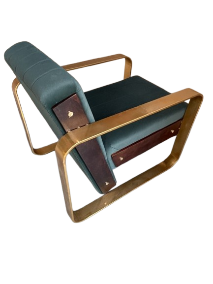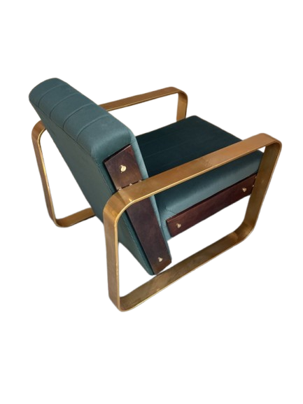 This striking lounge chair features a modernist design with a distinctive bentwood frame that creates a continuous loop forming the arms and legs. The frame is crafted from warm-toned wood with a sleek, smooth finish that contrasts elegantly with the dark upholstered seat and backrest. Exposed hardware and angular wooden supports on the back add a touch of industrial charm, while the overall silhouette speaks to mid-century influences. Perfect for a stylish living space or office, this chair merges comfort with timeless sophistication.